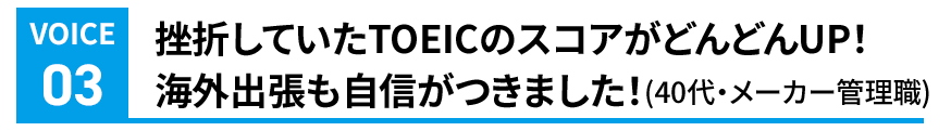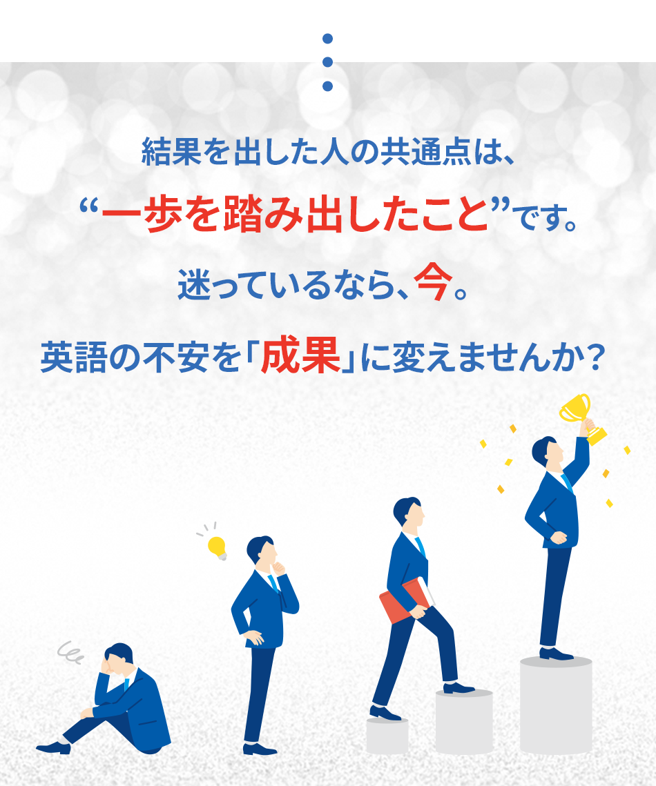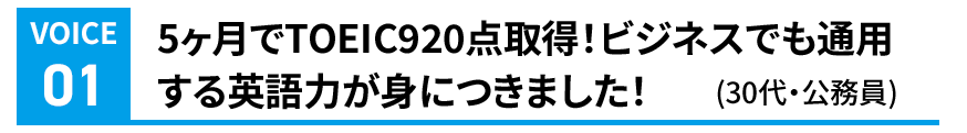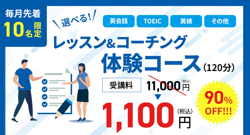 VOICE受講生の声 FEATURE特徴 CLASS受講クラス・コース FAQよくある質問 ACCESSアクセス お問い合わせはこちらから 電話でお問い合わせ LINEでお問い合わせ 3ヶ月で200点以上スコアを伸ばし、5ヶ月でTOEIC920点を達成。 先生が適切な教材を選び、問題のポイントを丁寧に指導してくれるので、 効率的に学習が進み、伸び悩むことなくスムーズに点数アップできました。 コーチングでモチベーションも維持でき、質問にも丁寧に対応してもらえる環境です。 独学では時間がかかったであろう高得点も短期間で達成。現在は英会話や英検にも挑戦中です。 昔大手英会話スクールで英語を学んでいましたが、あまり伸びているという実感がなく、楽しくありませんでした。 しかし、Hybrid Englishでは、毎回達成感のあるレッスンとなっており、 たった数ヶ月で単語単位でも会話が難しかった私が、文章単位で会話できるようになりました! Hybrid Englishのおかげで、 米国公認会計士の資格を取得することができました。 会社の昇進条件でTOEICが必要でした。自分で勉強してもなかなか点数が上がらず挫折していたのですが、受講し始めてどんどんスコア UPし、若年層で管理職に昇進できました。 海外出張でも自信を持って英語業務がこなせるようになりました。 職場で英語担当になったことをきっかけに受講。毎日報告する習慣ができ、三日坊主だった自分が平日でも4時間勉強するように。 コーチングでは進捗や悩みを親身に聞いてもらえ、問題集もやり抜く力がつきました。 TOEICは420点から640点に向上し、仕事でも英語で会話できるように。夢だった「英語を話すこと」を実現でき、本気で学びたい人におすすめです。 業界TOP0.5%に選ばれた「本物の英語教育のプロフェッショナル」による実践レッスン。 ビジネスでも通用する英語力を養成します。 目的に応じたクラス設定と、柔軟な受講スタイルが整っているので、忙しい方でも仕事や学業と両立しながら無理なく続けられます。 MBAホルダーのプロの問題解決コンサルタントが、あなたをコーチング。 徹底的に英語力を分析し、最短で目標達成するための学習カリキュラムを1人1人個別に作成し、効果的な学習を促進します。 英語レベル 最短で伸びる学習カリキュラム レッスン〜家庭学習まで全てオーダーメードであなた専用の学習カリキュラムを作成し、学習をトータルサポートします。 家庭学習で困ったことがあっても、いつでも直接公式LINEで講師に質問や相談できるので安心です。 また、24時間365日使い放題のオンライン学習制度も整っております。 お客様に心からご満足いただけるサービスを提供するために、30日間の全額返金保証を設けています。 万が一、内容にご納得いただけなかった場合には、受講済みの分も含めて、全額を返金いたします。 受講を始めるにあたって不安がある方にも、安心してご参加いただける環境をご用意しています。 Hybrid English コーチングスクールA 大手英会話スクールB 価格(1ヶ月あたり) 30,855円〜 210,833円〜 22,000円〜 レッスン時間 (1回90分) (なし) (45分) 専用カリキュラムの作成 プロが最短で伸びる学習カリキュラムを作成 家庭学習 24時間使い放題のオンライン学習ソフトあり 個別面談 (毎月60分) 学習サポート (24時間LINE相談OK) お問い合わせはこちらから 電話でお問い合わせ LINEでお問い合わせ 実践的な英語で「即使える英語力」が身につく 会議、商談、出張、日常会話など、あらゆるシーンで求められる英語をロールプレイ形式で形式で実践。読む・書く・聞く・話すの4技能を使うレッスンを通じて、実務対応力を強化。「通じる・使える英語」が、習慣として身につきます。 ALL ENGLISH レッスンで、思考も英語に切り替える レッスンはすべて英語で行います。英語で考え・話す環境を整えることで、瞬時に反応できる“英語脳”を育てます。メール、会議、プレゼンのすべてで必要な「英語で考え、英語で伝える力」が、自然と身についていきます。 正しい発音が「通じる」「聞き取れる」を生む 英語の音のルール (音法) を体系的に学びながら①イントネーション (抑揚) 、②リズムと間の使い方、③省略・連結を徹底的にトレーニング。また様々なアクセントや話し方も学び、英語を母語としない方にも対応。グローバルな現場で“通じる・理解できる英語力”が習得できます。 戦略的テクニックで「確実に伸びる」解き方を身につける ただ英語ができるだけではスコアは伸びません。必要なのは「試験に特化した戦略」。時間配分、設問の優先順位、読み飛ばしの判断など、得点に直結する“解き方の技術”を実践形式で習得します。知識だけでは超えられないスコアの壁を突破します。 読み方を変えてスコアが変わるリーディング 長文読解は時間との戦い。「全文を読む」よりも「どこを・どう読むか」がカギです。設問の先読み・キーワードスキャン・ひっかけ問題の見抜き方など、読みながら正答にたどり着く思考法をトレーニングし